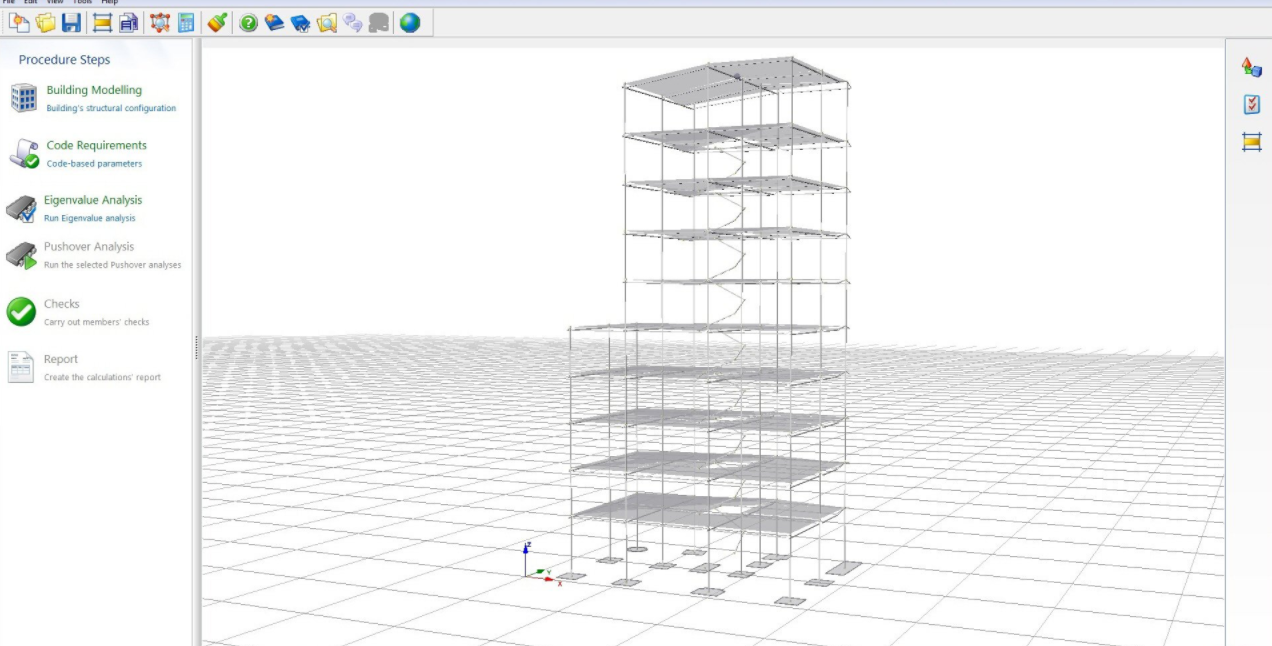 建筑模型 3D楼层视图 3D模型 玻璃钢和楼梯分配 不同的基础水平 显示有限元模型 代码要求 变形的形状查看器 变形的形状查看器 会员支票 接头检查 报表生成器 报告预览